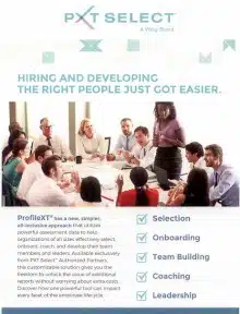 PXT Select™ offers an all inclusive approach which utilizes powerful assessment data to help organizations of all sizes effectively select, onboard, coach and develop their team members and leaders.