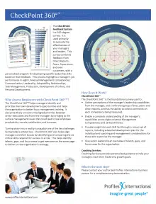Profiles Sales CheckPoint™ helps you precisely target developmental needs, enable more effective coaching and communication, align sales priorities, and improve productivity and retention.