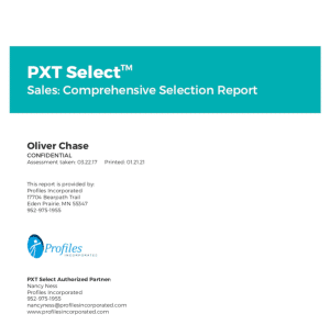 How does your organization ensure that you hire excellent salespeople who can build trust, align their mannerisms with a variety of buyer personalities and become that trusted adviser who can be called on to play a consultative role? The PXT Select Sales Assessment will provide key insights to assist your interviewing efforts to hire that excellent, trusted adviser salesperson. Many of our customers like to use the PXT Select Sales: Comprehensive Selection Report (see sample report). Pages 8-10 review 8 Critical Sales Practices using the Profiles Incorporated data to provide context to each sales practice.